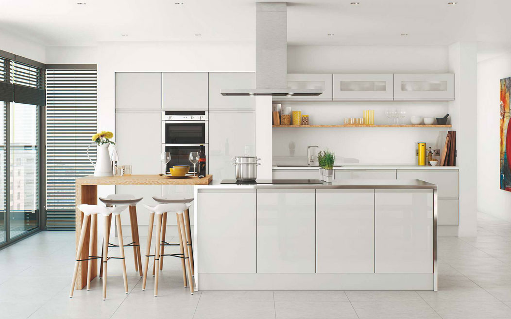 Handleless door style known as J-Pull kitchen style gives the kitchen a modern look and no secondary handle is required. You can choose from a variety of colors (Gloss or Matt). Futhermore, it can be spray painted to any color choosing premium color services.