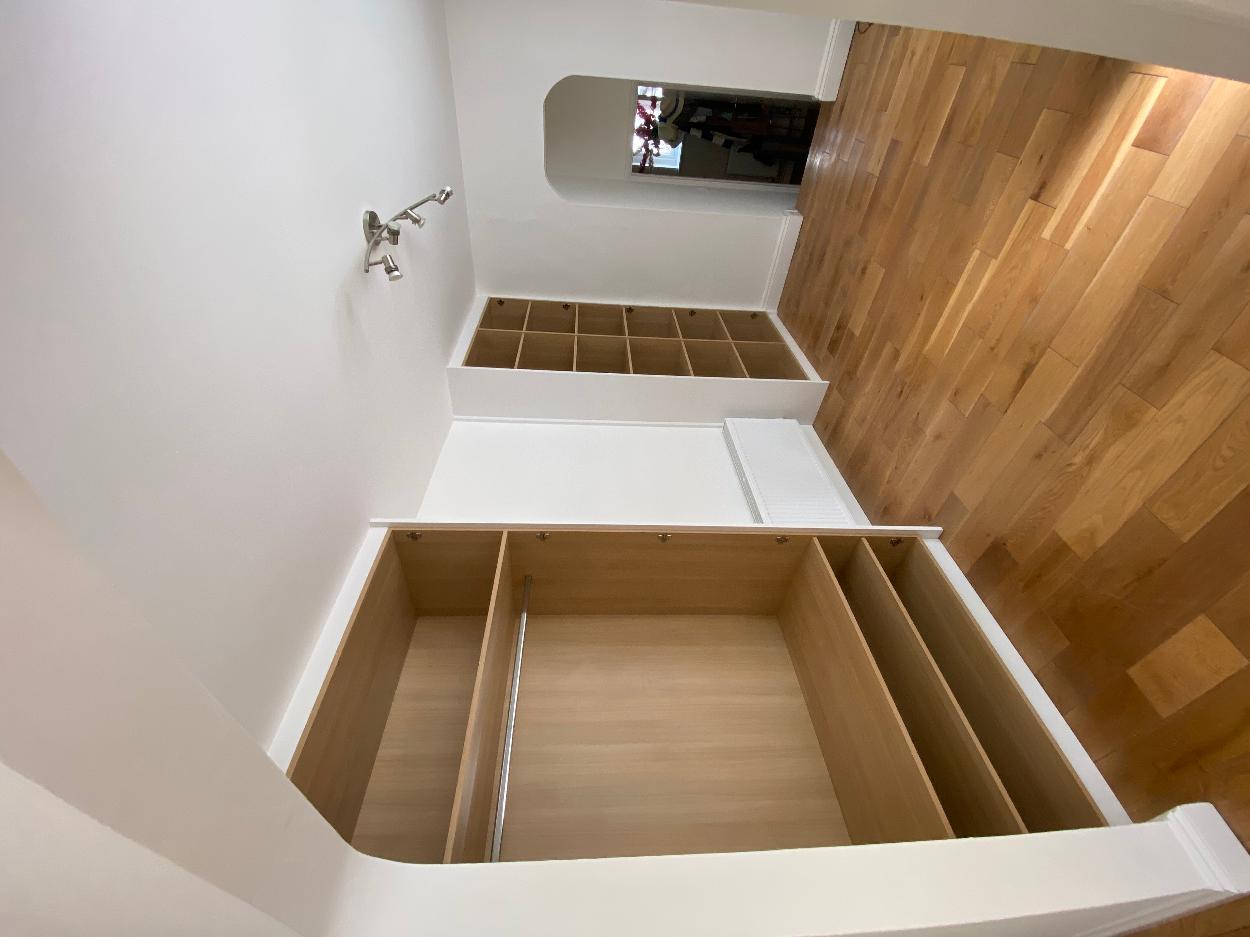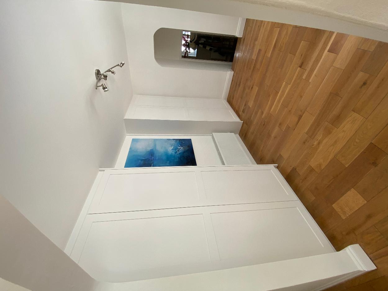 Chimney Shaker Style Farrow @ Ball spray Wevet One more happy customer with an excellent space-saving solution in between chimneys. Materials used: Spray painted MDF board Farrow @ Ball Wevet Matt 22mm Click below to see our work! See our Work